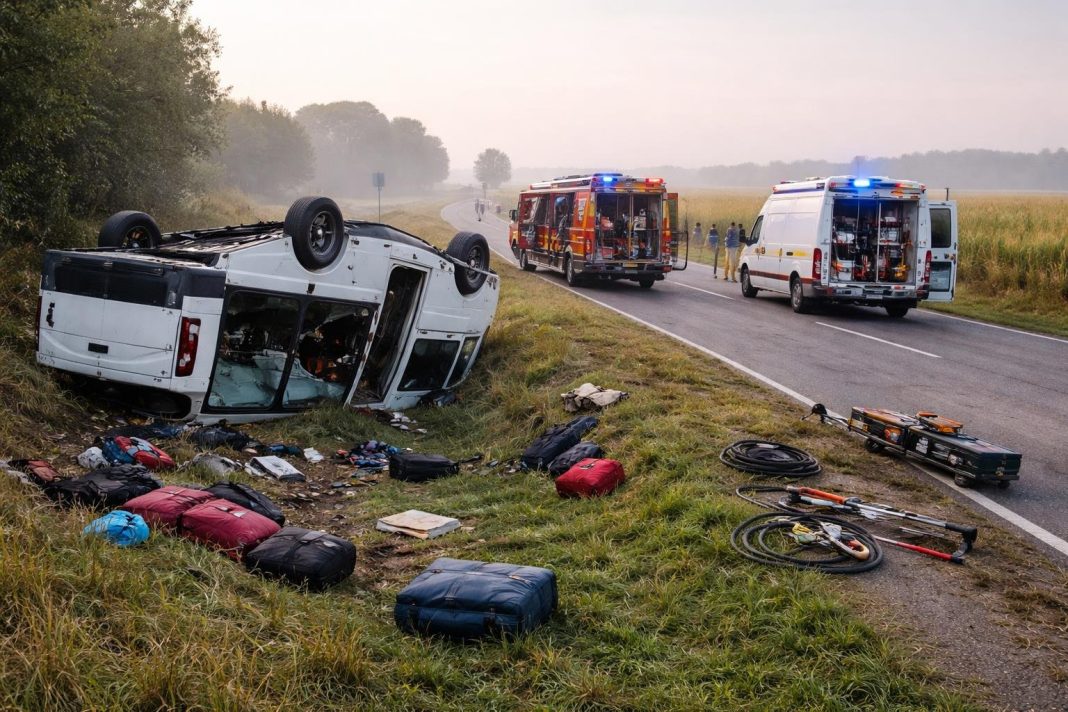 Un grav accident rutier s-a produs sâmbătă dimineață pe DN DE 581, între localitățile Tutova și Priponești, la limita județelor Vaslui și Galați. Un autocar înmatriculat în Republica Moldova a ajuns să se răstoarne în afara părții carosabile, în timp ce circula pe ruta Chișinău – București, au comunicat autoritățile.