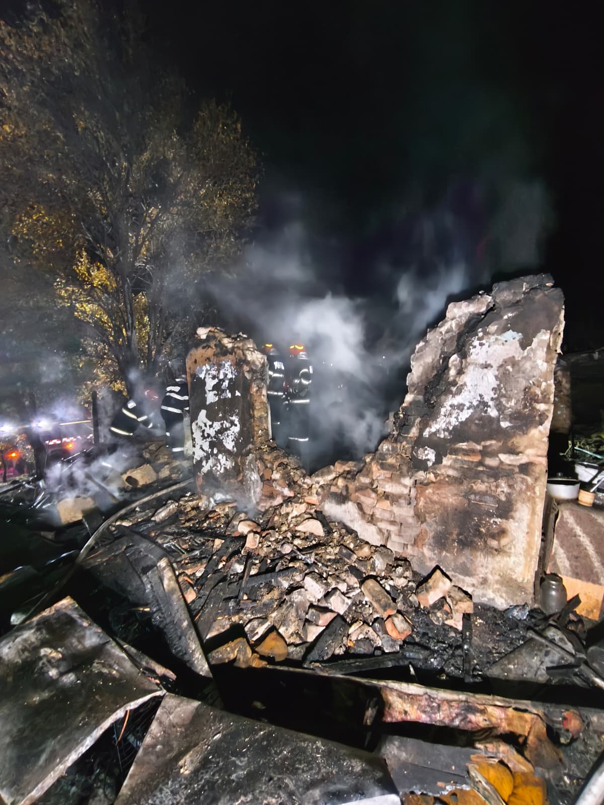 Incendiul, extins pe o suprafață de aproximativ 100 de metri pătrați, a distrus acoperișul casei, aparatele electrocasnice și circa 300 de kilograme de materiale textile. Din păcate, intervenția nu a reușit să salveze viața proprietarului, un bărbat de aproximativ 50 de ani, găsit carbonizat în locuință.